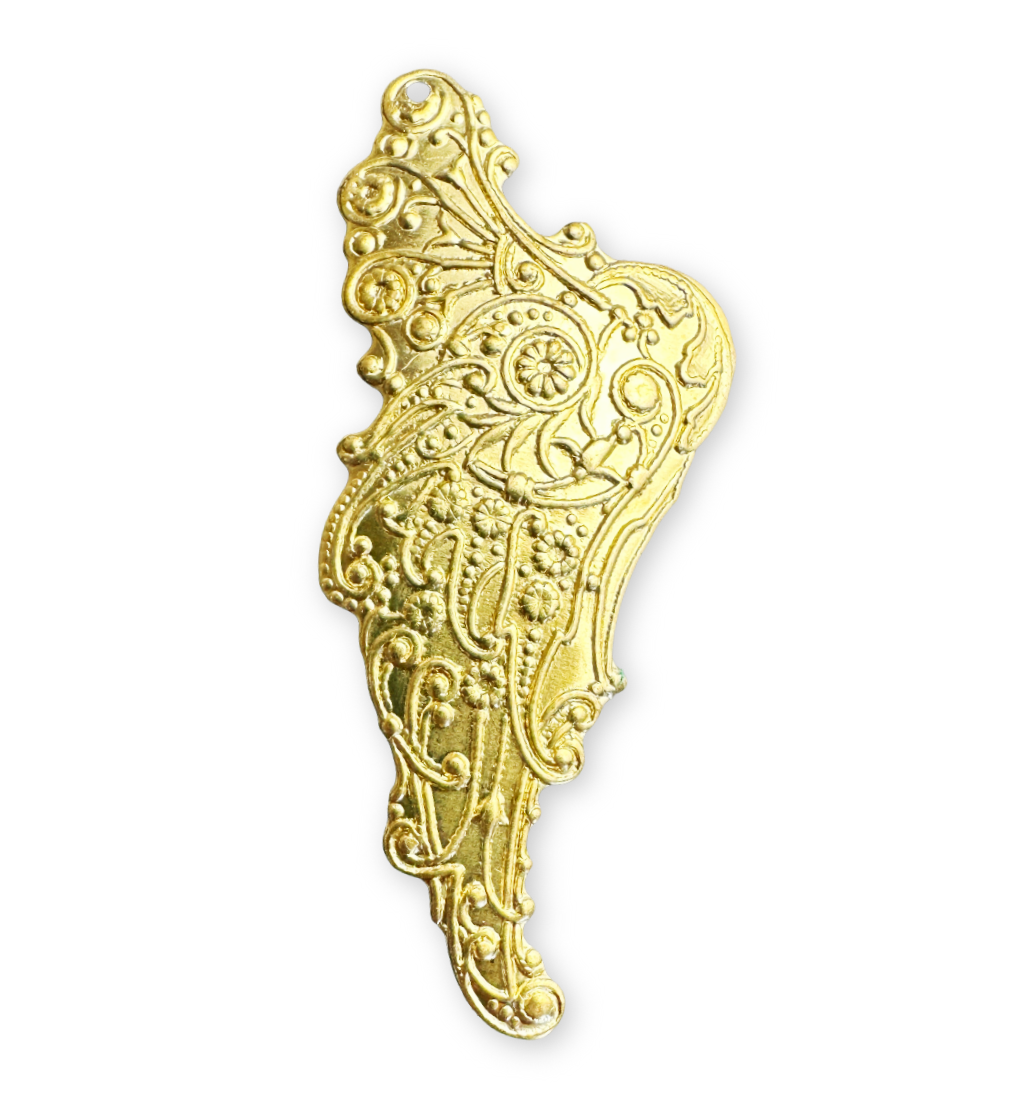 Each finely detailed element is stamped from solid brass. These exquisite stampings feature intricate design, fine lined etching, and bold raised relief.