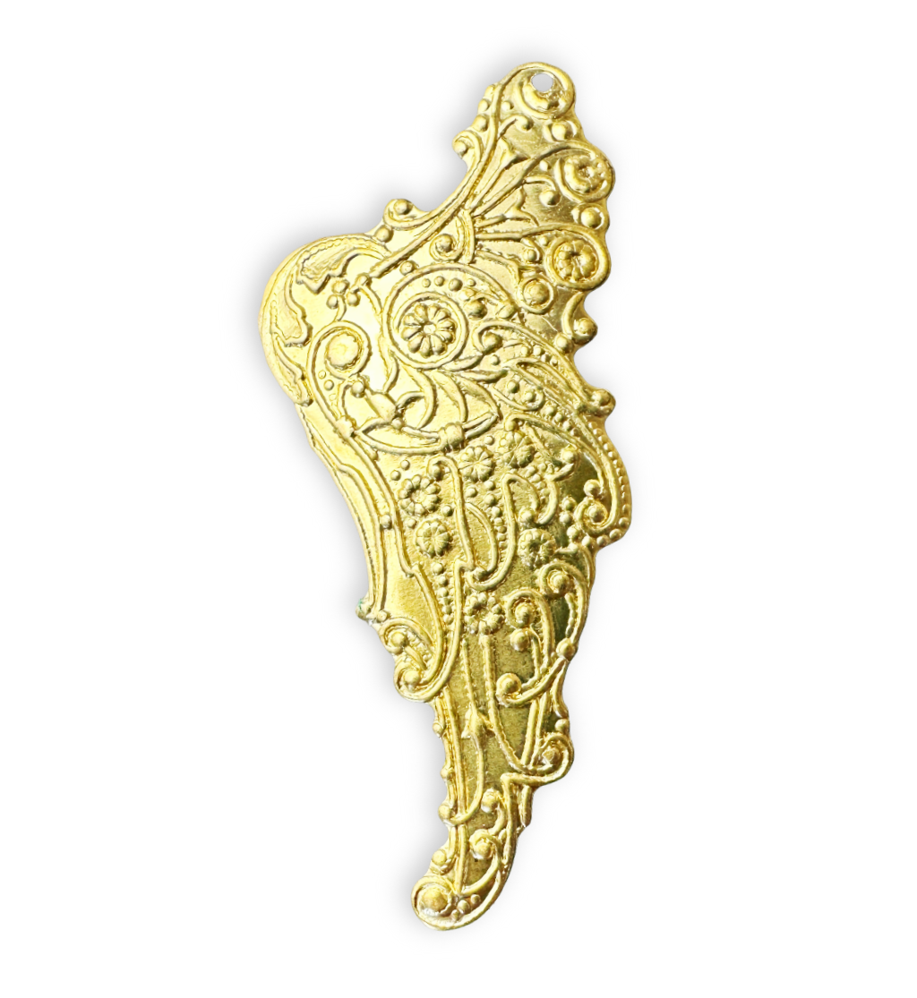 Each finely detailed element is stamped from solid brass. These exquisite stampings feature intricate design, fine lined etching, and bold raised relief.