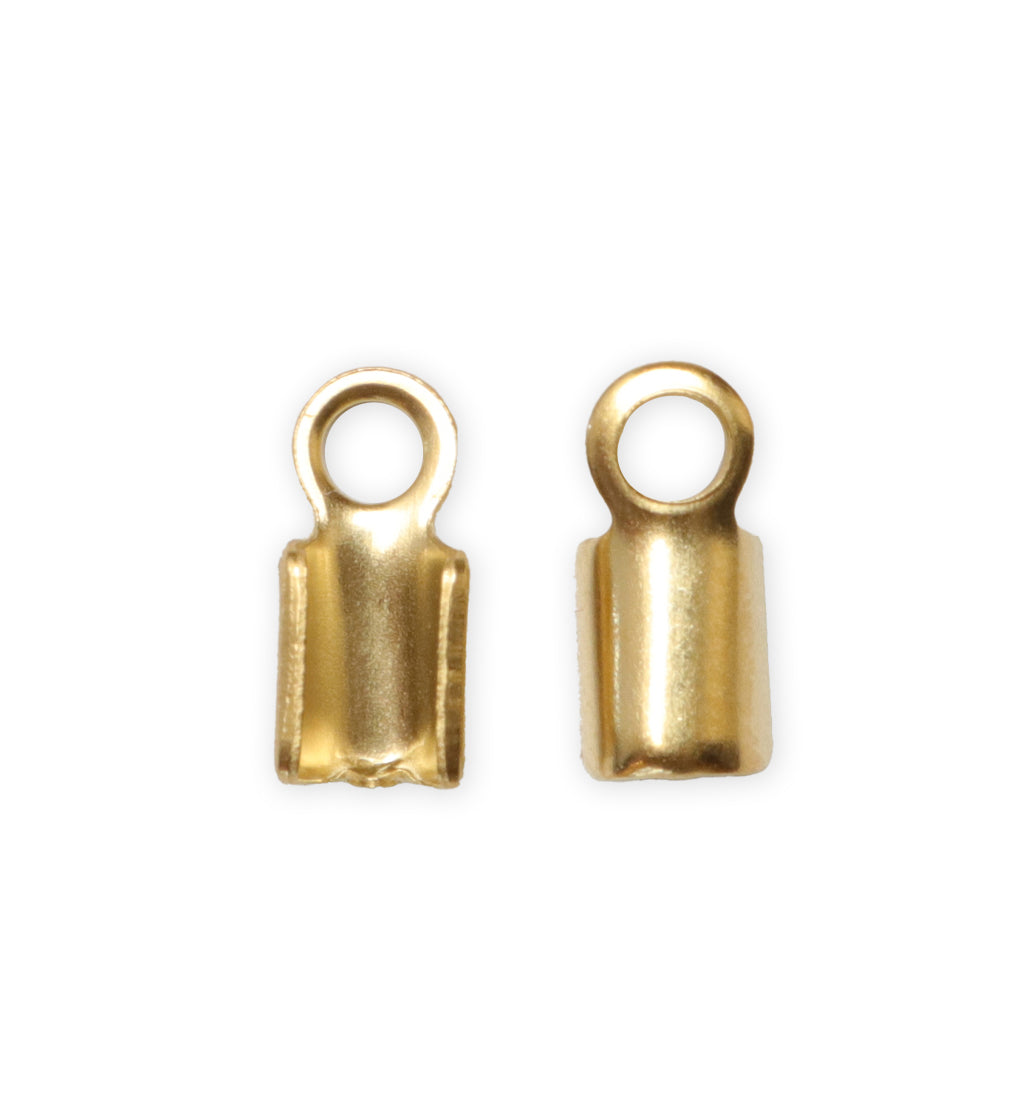 This crimp is the perfect size for finishing the ends of 2mm leather cord. Each finding is formed from solid brass for bendability and ease of use.