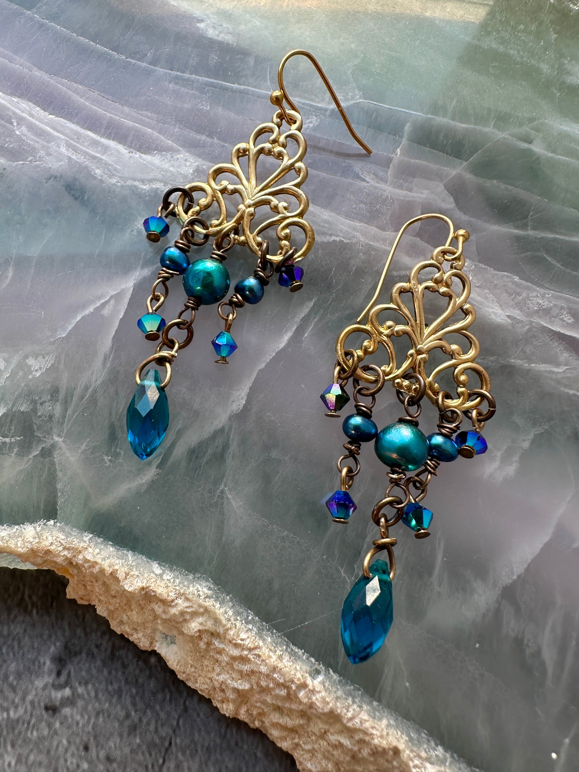44x26mm Rococo Diamond Filigree, Solid Brass (7 pcs)
